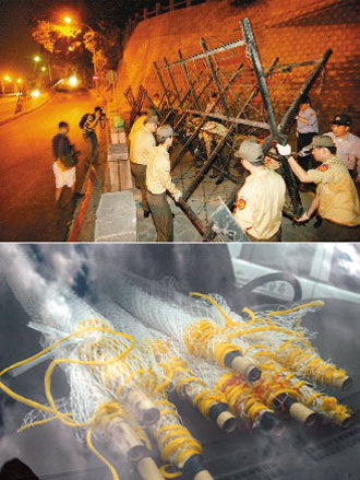 臺北警方在相關地點布置維安阻隔物。(圖:臺灣《聯合報》)