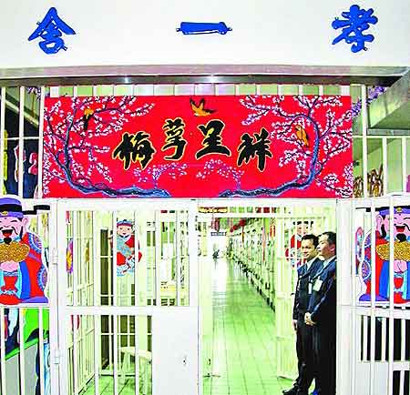 最近北所每間舍房處處張燈結彩,每層樓舍房門口都是成串的手工紙鞭炮及年節擺飾,有些舍房還貼滿許愿紙,希望來年能重新做人早點返家。另外,北所從除夕到大年初二,會推出與坊間圍爐相仿的菜單,包含麻油姜母鴨、佛跳墻等,讓所有受刑人、被告都能過好年。