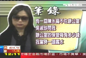 根據報道,陳鎮慧向特偵組供稱,吳淑珍曾經打電話問她“‘總統’辦公室內的保管箱有多少錢”?馬永成也供稱,陳水扁親自向企業募款動輒五六千萬元,都會直接放在“總統府”內“總統的房間”,更夸張的是竟然還動用隨扈幫忙押送現金。