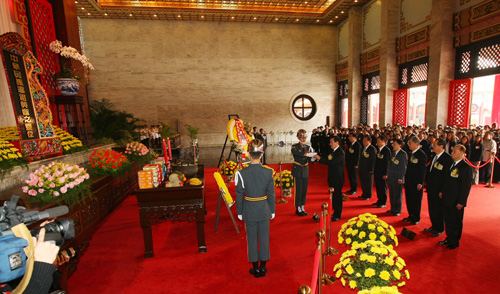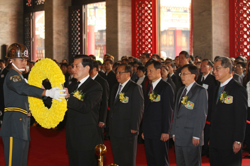 清明節(jié)將屆,“中樞遙祭黃帝陵典禮”上午在圓山忠烈祠舉行,馬英九親率文武百官參與,遵循上香、獻花、三鞠躬禮等儀式,遙祭黃帝陵,“行政院長”劉兆玄、“司法院長”賴英照等出席陪祭,典禮莊嚴肅穆。