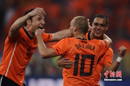當兩隊再度上場,在很多人的心里,眼前的比賽已經幾乎沒有懸念,很少有人能逆轉占據領先的“五星巴西”。剛剛過去的45分鐘里,在巴西人圓熟又實用的打法面前,荷蘭人甚至難有威脅,尖刀式人物羅本已經被牢牢盯死,“橙衣軍團”還有誰能改變局面——沒人會想到斯內德。