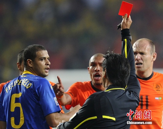 中新網(wǎng)7月3日電 巴西隊(duì)1比2被荷蘭隊(duì)淘汰,球隊(duì)的中場大將梅洛成為頭號(hào)罪人。不過,賽后這名在比賽中既擺烏龍又吃紅牌的后腰表示羅本太愛表演,自己是冤枉的,如果自己玩真的,羅本當(dāng)場就給廢了。