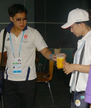 昨天下午新加坡烈日當(dāng)頭,氣溫很高,在活動進(jìn)行到一半時,體貼的霍啟剛還為郭晶晶買來了冰鎮(zhèn)飲料,并在活動結(jié)束時大方地來了個單獨(dú)合影。