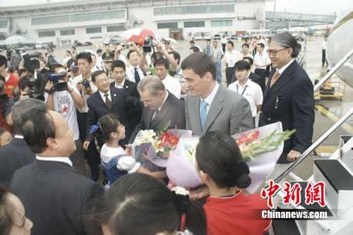 中新網(wǎng)南京8月27日電 (記者 孫翔鳴 張璐)今天下午2時(shí)10分,國(guó)際奧委會(huì)主席雅克·羅格乘坐專機(jī)由新加坡飛抵南京開(kāi)始為期三天的考察訪問(wèn)。