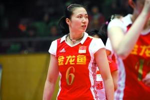 首發出場的老將周蘇紅“接應”成功。本報記者 田穎 攝