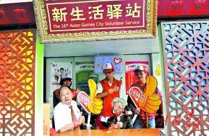 周家禎向韻平夫婦在上下九步行街的亞運新生活驛站為市民提供志愿服務(wù)。