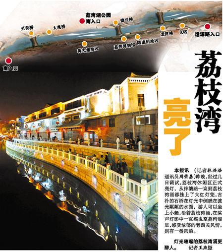 廣州日報11月3日報道 昨晚,經(jīng)過幾日調(diào)試,荔枝灣休閑區(qū)正式亮燈,從泮塘路一直到荔枝灣涌都掛上了大紅燈籠,古樸的石橋在燈光中倒映在波光粼粼的水面,游人可以坐上小艇,沿著荔枝灣涌,在槳聲燈影中一直搖曳至荔灣湖里,感受濃郁的老西關(guān)風(fēng)情,別有一番風(fēng)韻。