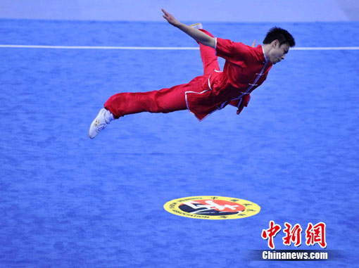 身穿紅色戰(zhàn)衣的袁曉超當(dāng)早出現(xiàn)在亞運(yùn)男子長(zhǎng)拳比賽的現(xiàn)場(chǎng)。在向觀眾抱拳致禮后,袁曉超邁步出拳,1分20秒的動(dòng)作套路一氣呵成,姿勢(shì)舒展,猶如行云流水一般,最后他得到了全場(chǎng)最高分──9.78分。