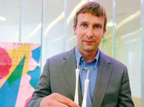 11月14日晚,廣州新電視塔頂層,在這個尚未開放的區域,這座“小蠻腰”的設計師馬克(MARK HEMEL,見上圖)接受了羊城晚報記者專訪。馬克的記憶,還停留在亞運開幕式那晚電視塔璀璨奪目的那刻,他既驚嘆又感慨,連連稱:“‘女兒’終于出閣了!”