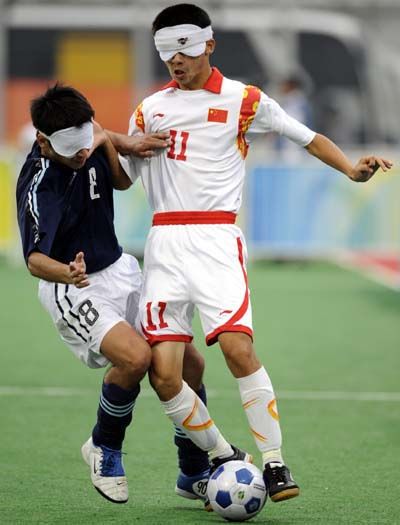 由于隊員視力問題,比賽中隊員只能依靠球發出的聲響來判斷球的位置,所以經常會出現隊員找不到球的情況。在進攻方向上還經常要依靠引導員的幫助,隊員間的呼應較多,所以攻防速度沒有普通的五人制足球快,傳接球次數相對也較少,烏龍球出現會多一些。 (來源: 亞殘運會官方網站)