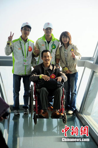 中新網廣州12月4日電(楊薇 吳楚斌 岳嘉)廣州亞殘運志愿者4日上午攜手30位殘疾人代表和家屬,一起登上羊城新中軸線上的地標性建筑——新廣州塔,體會廣州的新變化、新氣象。