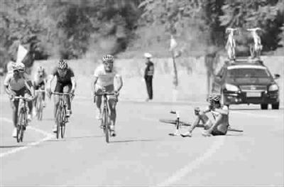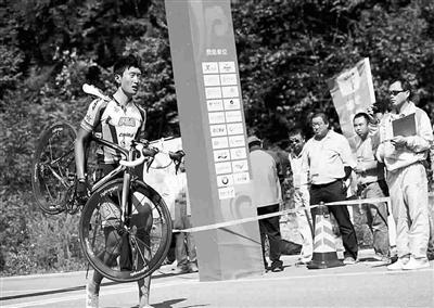 自行車選手摔倒不棄賽 扛著自行車走過終點(圖)