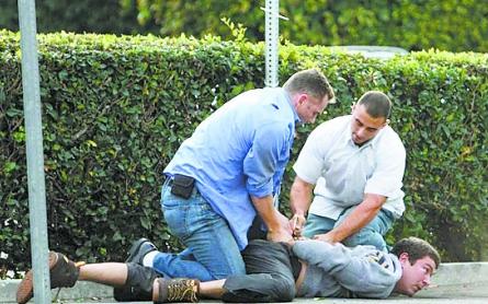 記者顯然不是保鏢的對手,貝克漢姆的兩名保鏢都曾經是海軍陸戰隊隊員。他們很快就將記者制服,并專業地將記者雙手用手銬拷起來壓在地上。直到警察趕到,記者仍然被反拷在地上。記者的相機被一名保鏢直接扔到了垃圾桶內。警察趕到后,叫來了救護車,不過當事的3人都拒絕接受治療。隨后3人被帶到警察局,不過貝克漢姆已經通知律師處理此事。“ 我們已經將事情寫了報告,目前還沒有人遭扣留或起訴。如果需要,我們會繼續調查”,比佛歷山警察局發言人表示。據悉,記者在當時拍攝的畫面已經交給警方。