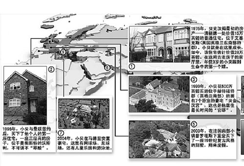從一個英國加油工人的兒子到現在全世界最能賺錢的運動員之一,小貝本身就是一部傳奇,要知道小貝是在艾塞克斯一處價值僅15萬英鎊的普通住宅里長大,而辣妹童年則是在一處寬大的獨立式洋房里度過,那棟房子價值近100萬英鎊。1996年,小貝與曼聯簽約后,買下了他個人的第一所房產,一座三層高的房子,位于曼徹斯特的沃斯利,相對現在豪宅的金碧輝煌,不可謂不“寒酸”。