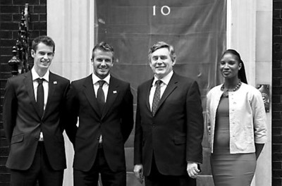 北京時間今天凌晨,在英國首相布朗的陪同下,貝克漢姆與英國網球頭號男單選手安迪穆雷、七項全能名將路易斯在倫敦的唐寧街10號聚首,商討一項新的慈善舉措——“消除英國的瘧疾”。