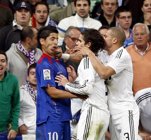 除了在第87分鐘對卡斯特羅犯規(guī),令皇馬被判點(diǎn)球之外,佩佩還惱羞成怒的踢躺在地上的對手,被主裁判紅牌罰下。他的這一不理智舉動引發(fā)了雙方球員沖突,在混戰(zhàn)中,佩佩一記重拳擊中卡斯特羅面部。場外的攝影記者捕捉到了這丑陋的一幕。