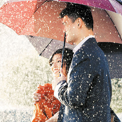 圖為小兩口在“人工雨”下大秀恩愛。圖據《北京日報》