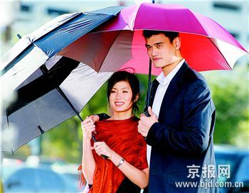 盡管因為在對國王的比賽中怒摔毛巾而可能惹上停賽的麻煩,姚明的心情看起來卻沒有受到什么影響。前天,他在休斯敦和太太葉莉一起參加了某保險企業的廣告拍攝。在廣告中,這對小夫妻上演了一段“雨中情”。