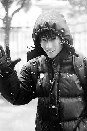 昨天下午,莘莊的室內(nèi)田徑訓(xùn)練館外,大雪紛飛,寒氣逼人。在漫天的雪花中,出現(xiàn)了一個渾身緊緊包著羽絨服的高個運(yùn)動員,快步跑向訓(xùn)練館。如果你不仔細(xì)看,根本就不會發(fā)現(xiàn),這個愛斯基摩人裝扮的小伙子,就是劉翔。
