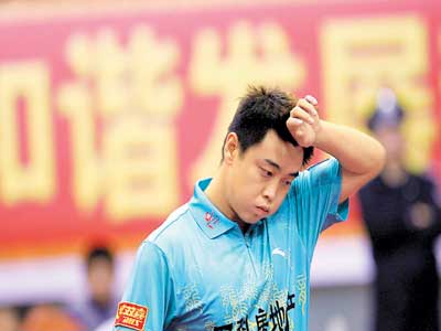 昨天下午,王皓第二個出場,對陣四川隊郝帥。這場比賽也成為王皓在“醉酒門”發生后,首次代表八一隊參賽,因此這場比賽也毫無爭議的成為了本站比賽的焦點之戰。比賽開始前全場觀眾興奮地大叫“王皓!王皓!”,但王皓從休息區走出來時表情卻十分木然,一個人低著頭慢慢走入場內,從表情上我們很容易感受到王皓承受了很大的壓力,比賽中,王皓一直面無表情,雖然時不時的還能打出一兩個好球,并且每打出一個好球都能得到全場雷鳴般的掌聲。不過王皓的表現始終心不在焉,表情比較呆滯,最后1:3失利。