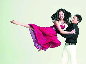 楊威楊云個(gè)性婚紗照:秀鞍馬動(dòng)作大腿上跳舞(圖)(2)
