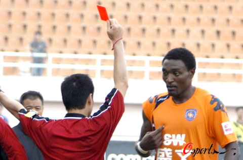 此時,正在青島隊后場的外援保羅尤如吃錯藥一般,儼然武圣關羽“靈魂附體”,從后場狂奔50米沖到事發地點,分別與遼寧隊幾名本土球員以及外援格里菲斯發生爭執,甚至還施展鎖喉大法,雙手卡住格里菲斯的咽喉,頗具千里走單騎,過五關斬六將之風。主裁當即將這位勇若張飛、豪比關羽的黑面大俠請出了綠茵場。