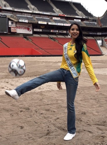 中新網11月21日電 當地時間22日,2009年聯合會杯抽簽儀式將在南非城市約翰內斯堡舉行。包括世界小姐張梓琳在內的各國佳麗應邀前往,在約翰內斯堡的埃利斯球場大秀球技。