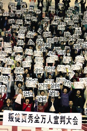 中超賽場上各種狀況層出不窮,在這樣的“亂世”中生存,球迷們早就學會用其他方式自娛自樂了。與其哭天搶地為無藥可救的中國足球哀怨,不如挖空心思想一條娛樂大眾的標語吧。從河南主場“專治各種不服”,到“叛徒賈秀全萬人宣判大會”,從“海濱多到唐城賓館”,到“魯治申”,我們看到了一個日益娛樂化的中國足球。
