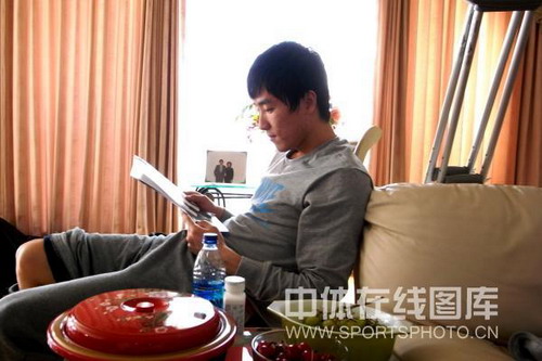 劉翔在美照片曝光:病床上玩手機 俏皮微笑(組圖)(3)