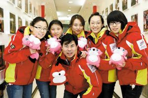 在昨天的網絡聊天現場,這群活潑的姑娘對著話筒唱出對隊長王冰玉的表白:“胖冰胖冰我愛你,就像老鼠愛大米……不對,就像大米愛老鼠……胖冰是1984年生的,屬老鼠!蓖醣駥﹃犛训臒崆榕糜行┐胧植患,漲紅著臉說“我也愛你們”。