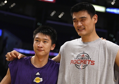 賽前的訓練行將結束,又到了老友會的時間。孫悅顯然沒有意識到這一點,還在繼續(xù)練著球。“別練了,過來!币γ鞔驍嗔藢O悅的訓練。孫悅告訴姚明自己一切都好,就是有些想念國內(nèi)的美食,“一切都還好,就是找不到地方吃麻辣小龍蝦,有點想念北京的簋街了!币γ鲃t以“大哥”身份給了孫悅忠告:“從替補到主力,我在國家隊、在火箭隊都是這么過來的,這是一個球員必經(jīng)的過程。你還很年輕,而且有上進心,希望能夠盡快得到上場機會!辈贿^,據(jù)《洛杉磯時報》透露,孫悅將在11月28日被湖人正式下放到NBDL。期待中的中國德比,改年再見,前提是湖人愿意召回孫悅。