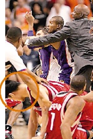 阿爾斯通怒火沖天地滿場(chǎng)亂竄,姚明被奧尼爾雙手推倒在地,納什從地上掙扎起身欲大打出手……這混亂的一幕出現(xiàn)在昨天火箭客場(chǎng)對(duì)陣太陽的比賽中,幸好在教練和裁判的控制下,雙方的群毆沒有繼續(xù)惡化,最終火箭以94∶82擊敗太陽。