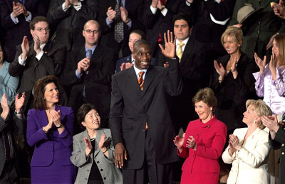 2007年1月,華盛頓國會大廳,小布什總統正在宣讀國情咨文,穆托姆博在第一夫人勞拉身邊坐得筆直。巴蒂爾說,“我不敢相信跟第一夫人坐在一起的是穆托姆博。這家伙總是那么神秘,我甚至相信他可以拯救世界。在國情咨文演說中獲得褒獎,這真是太了不起了。”
