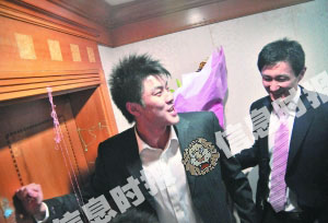 昨天搶新娘的“吉時”定在了凌晨12:15,不過晚上11點左右杜鋒和家人已經整裝待發,可他卻表示自己并不緊張,“很平靜,”杜鋒表示對搶新娘這事一點都不擔心,“該強攻的就強攻,該智取的就智取。”當被問及是搶新娘難還是奪CBA總冠軍難時,杜鋒得意地笑了:“我不搶,她也得跟我走。”