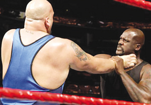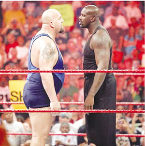 當杰里科叫上體重達到226公斤的WWE冠軍成員“表演者”(保羅·懷特)時,奧尼爾叫他“胖男孩”并向他挑戰!氨硌菡摺本芙^了跟他比賽,“我撞翻你后,又得去撞翻勒布朗·詹姆斯,我可不想大衛·斯特恩和整個NBA都來追殺我!