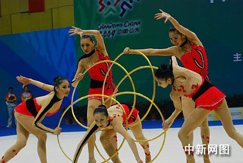 中新網德州10月20日電(記者 張春法 尹傳偉)在今晚舉行的中國十一運會藝術體操集體全能項目比賽中,由奧運會名將章碩、孫丹、侴陶、隋建爽領銜的遼寧藝術體操隊近乎完美的表現技壓群芳,以50.300的高分奪得本屆全運會藝術體操項目含金量最高的一枚金牌——集體全能冠軍;四川隊和上海隊獲得藝術體操銀牌和銅牌。至此,十一運會藝術體操比賽完美落幕。