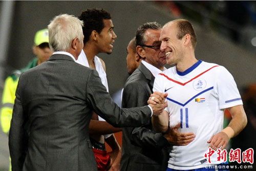 中新網(wǎng)6月25日電 在今天凌晨進(jìn)行的一場(chǎng)世界杯小組賽中,已經(jīng)提前出線的荷蘭隊(duì)在開普敦綠點(diǎn)球場(chǎng)迎戰(zhàn)提前出局的喀麥隆。最終憑借范佩西和亨特拉爾的進(jìn)球,荷蘭隊(duì)以2-1擊敗喀麥隆,小組賽三戰(zhàn)全勝以小組頭名晉級(jí)。