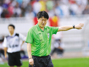 昨天的比賽頗有戲劇性,兩隊在比賽中的機會都很多,但最終都沒有通過努力獲得進球,而是主裁趙亮的兩個點球判罰,才讓本場比賽避免了零進球的尷尬。由于金德隊尚有降級之憂,因此昨天他們雖然是客場作戰,但打得并不保守,進攻時照樣敢于投入兵力。第34分鐘,金德隊獲得良機,關震先是撲出了金德隊員的一腳勁射,但是皮球卻落在了插上的文虎一面前,關震起身再撲文虎一腳下球,后者突然倒地,結果被主裁趙亮判罰犯規,金德隊獲得點球。金德隊外援金殷中主罰點球命中,1:0。失球后的舜天隊加強了進攻力度,三分鐘后榮昊插入對方禁區被金德后衛放倒,趙亮再次判罰了點球,薩薩騙過了國門宋振瑜將球穩穩罰進,1:1。