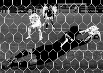易邊再戰(zhàn),日本隊加強進攻,一度占據(jù)優(yōu)勢。第54分鐘,內田篤人禁區(qū)內右側勁射,皮球擊中立柱后彈在楊智手里。1分鐘后,榮昊左側下底快速傳中,在中國隊搶點壓力下,中澤佑二飛身救險和門將酋崎正剛彼此干擾,皮球反彈向空門,田中斗笠王在門線前解圍。第81分鐘,姜寧左路形成傳中,日本隊球員禁區(qū)內手球犯規(guī),可惜楊昊打出力道不大的半高球,被酋崎正剛將點球撲出。最終在凜冽的寒風中,雙方0比0戰(zhàn)成平手。整場比賽,國足打出了久違的精氣神,多次贏得現(xiàn)場中國球迷掌聲。