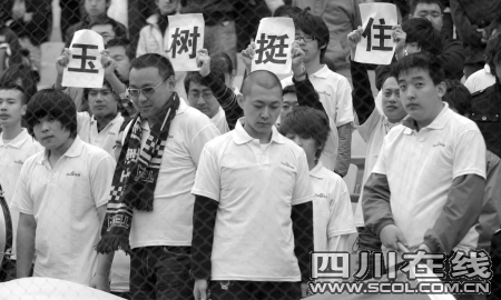 中超賽場 向玉樹罹難同胞致哀