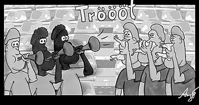 德國廣播電視臺(tái)稱,嗚嗚祖啦的噪音“就如同絕望的嬰兒哭泣,或者捅了馬蜂窩一樣,聲音實(shí)在讓人無法忍受”。體育頻道主持人艾利克斯說:“噪音給轉(zhuǎn)播造成了很大影響,我們一直試著提高嗓門解說比賽,但是聲音無法蓋過現(xiàn)場(chǎng)嗚嗚祖啦制造的噪音。”