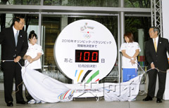 中新網(wǎng)6月25日電 據(jù)共同社報道,昨天距2016年夏季奧運會主辦城市揭曉還有100天,東京奧申委在東京國際論壇中心設置了一座顯示剩余天數(shù)的倒計時鐘。
