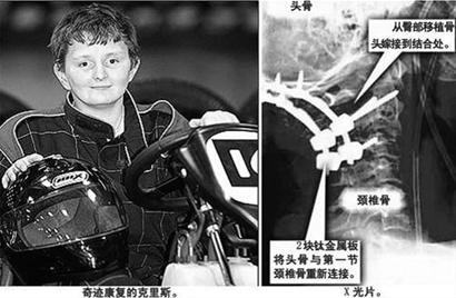 克里斯的母親戴比激動地說:“他終于重返心愛的運動,想到他曾經被‘斬首’,這真是一個奇跡。”艾文醫生表示:“克里斯實在是個‘奇跡小子’。他是世界上唯一一名經歷了如此嚴重的外傷后又重新過上正常生活的人。其他的類似患者雖然也有極個別幸存,可是全都徹底癱瘓。” (朗朗)