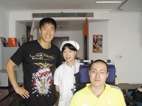 多方打聽了解到的情況是,本周四,劉翔穿著黑色T恤,頭戴鴨舌帽,悄悄進入醫院。因為同是上海運動員,又是老朋友,劉翔和湯淼聊得很開心。劉翔先仔細了解了湯淼的康復情況,鼓勵他積極配合醫生治療,以爭取好的結果。劉翔此行相當低調,只在病房呆了十分鐘就匆匆離去,不過走之前,他還是滿足了湯淼的主治醫師、護士合影留念的要求。