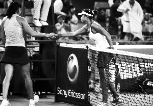 全場比賽,小德發出了10個ACE球,而哈內斯庫一個都沒有,這也使得塞爾維亞人往往在關鍵時飆發球。次盤第2局,小德落后時又開始力拼一發,球拍卻一下子扔了出去,全場嘩然!拔蚁M@樣的事故是最后一次發生,尤其是在這樣一項大賽中,這的確太不應該了!毙〉沦惡笮χf,當時手心有汗,球拍比較滑。