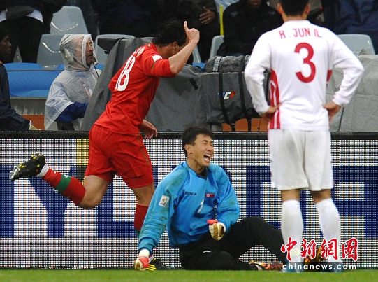 經歷了首戰的亮相,以神秘面貌示人的朝鮮隊已經“見光死”。此輪他們不幸遇到了急于拿分,急于撈凈勝球的葡萄牙隊,朝鮮隊卻出現嚴重的判斷失誤,過早亮劍,導致劍毀人亡。在久經沙場的歐洲勁旅葡萄牙隊的眼中,他們的那三板斧難免已是黔驢技窮。何況,朝鮮隊還要和葡萄牙對攻,班門弄斧,正中了葡萄牙隊的下懷。