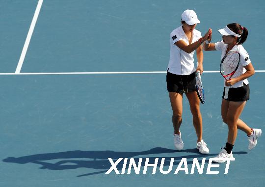 中新網1月22日電 據北京奧運會官方網站報道,在剛剛結束的2008澳大利亞網球公開賽女雙1/4決賽中,賽會7號種子中國黃金組合鄭潔/晏紫,在先失一盤的情況下上演翻盤大逆轉,擊敗威廉姆斯姐妹挺進半決賽,三盤比分為:3-6,6-4,6-2。半決賽中鄭潔/晏紫將遭遇賽會12號種子跨國組合阿扎倫卡(白俄羅斯)/皮爾(以色列)。