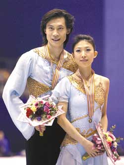 龐清/佟健為觀眾奉上了一套幾乎完美的自由滑,以總分187.33分力壓隊(duì)友張丹/張昊奪冠,后者獲得亞軍。繼2002年和2004年后,龐清/佟健第三度奪得此項(xiàng)賽事冠軍,為出征下月世錦賽做好了準(zhǔn)備。(記者李昊)