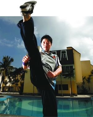雖然吳靜鈺的柔韌性是后天努力練成的,但選擇跆拳道卻似乎是先天注定的。“我爆發力很好,跑得特快,2000年市體校所有項目的隊員一起測800米時,我跑了2分29秒,離二級就差兩秒,連田徑隊的都被我甩在身后。當時好多隊都來要我,我們龔教練就來問我意見,我說,不讓我練跆拳道我就回家!
