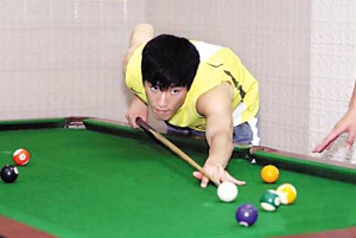 “飛人”劉翔忙里偷閑 打臺球保齡姿勢有板有眼